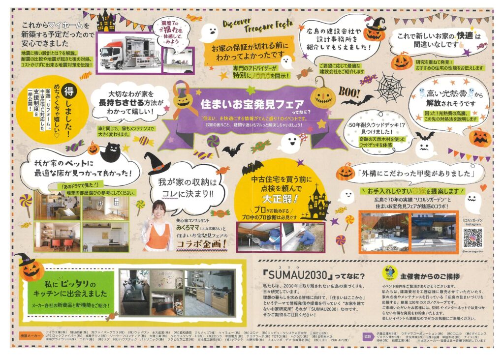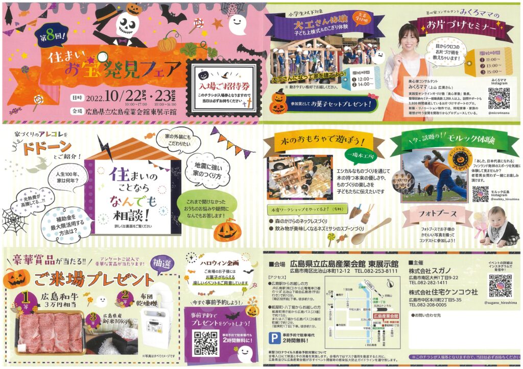 来る10月22日(土)23日(日)に 広島県立広島産業会館 東展示館(広島市南区比治山本町12-12)にて、住まいお宝発見フェアを開催いたします。