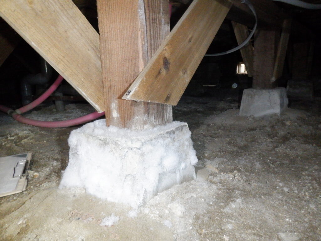 - 屋根裏の木材やコンクリートに白い粉状の跡が出ている