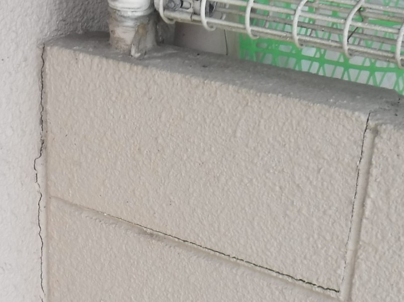 内部には特に問題等なく、外部の確認をしようと専用庭へ出て専用庭を囲むコンクリートブロック塀をふと見た時「なにこのひび割れ?!」