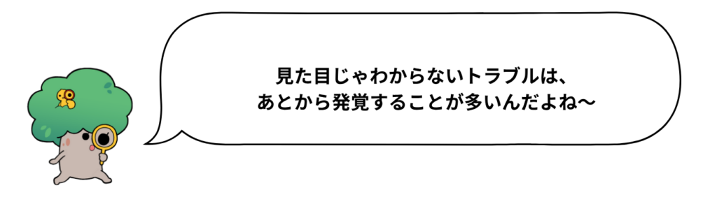 - 雨漏りや構造躯体の腐朽など、重要な部分の不具合