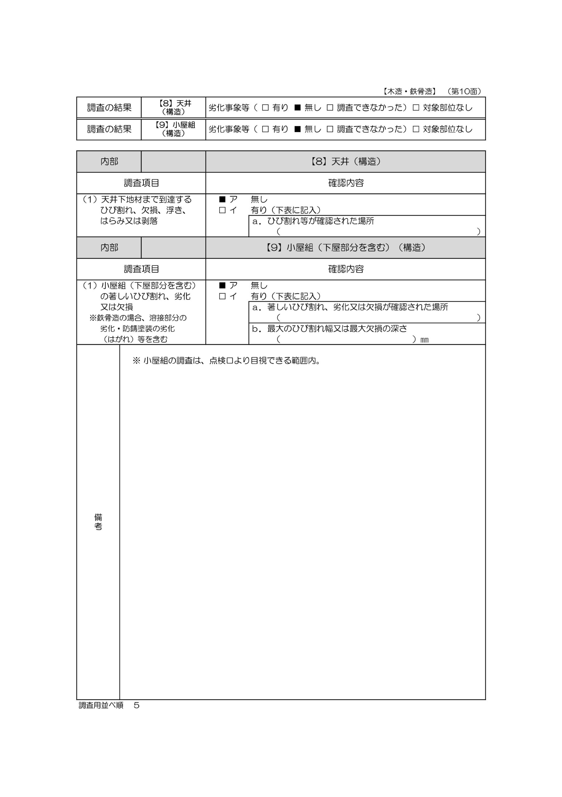 - シロアリ被害の有無(木部がある場合)